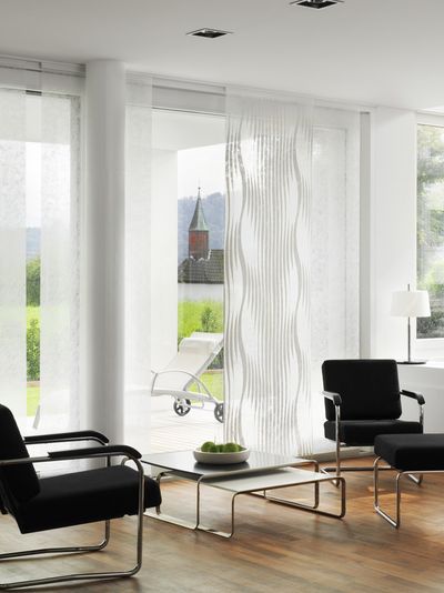 Nutzen Sie das volle Designpotenzial mit unserem flexiblen manuellen Flächenvorhangsystem, das sich für unterschiedlichste Grundrisse eignet. Dank der einzigartigen flexiblen Paneelwagen kann das System so gebogen werden, dass die Paneele leichtgängig und geräuscharm in den Profilen laufen. Die Panelwagen können ausserhalb des Fenstersichtbereichs seitlich an der Wand positioniert werden. Als flexibler Raumteiler lässt sich das Flex-System so gestalten, dass einzigartige Formen in einem Raum gebildet werden können - ganz individuell. Durch den optional erhältlichen Schleuderstab können die Paneele leicht verschoben werden - ohne den Stoff zu berühren.