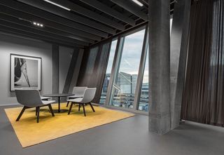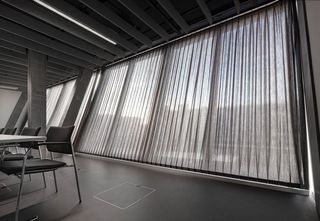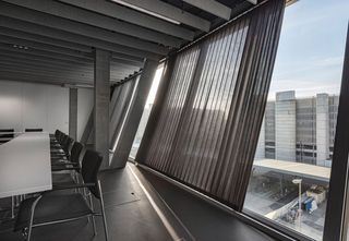 Business meets Lifestyle: The Circle bietet 70'000 m² modernste Büroflächen am innovativsten Ort der Schweiz. Zusammen mit HRS unde dem Architekten wurde innert wenigen Wochen eine 1:1 Musteranlage der schrägen Glasfassade entwickelt, um eine Innenbeschattungslösung zu finden. Die Voraussetzung war, dass ein Vorhang in Schräglage elektrisch bedient werden kann. Deshalb entwickelte Silent Gliss eigens für das Projekt Circle "Schräganlagen". Die grösste Herausforderung dabei war, den Vorhang gespannt zu halten und bedienen zu können.