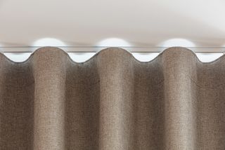 Eine einzigartige Gleiterkordel innerhalb der Schiene begrenzt die Ausdehnung des Stoffes. Ist der Vorhang geschlossen, hängt der Stoff in harmonisch verteilten Wellen, während er sich im geöffneten Zustand geordnet stapelt.