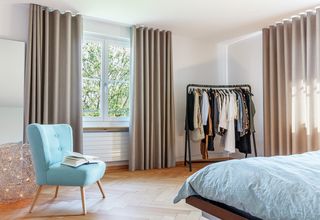 Eine einzigartige Gleiterkordel innerhalb der Schiene begrenzt die Ausdehnung des Stoffes. Ist der Vorhang geschlossen, hängt der Stoff in harmonisch verteilten Wellen, während er sich im geöffneten Zustand geordnet stapelt.